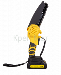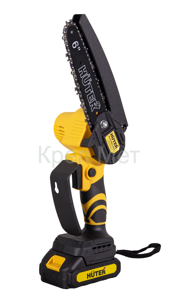 Она работает от электрического двигателя, который получает питание от аккумулятора напряжением 20 В и емкостью 2 Ач. Пила Huter ELS-2/6Li комплектуется одной батареей. Мотор передает усилие на ведущую звездочку через редуктор, где натягивается пильная цепь, которая состоит из 36 звеньев. Цепь проходит по заготовке заточенными звеньями, обеспечивая эффективное пиление со скоростью 6,5 м/с. Длина шины составляет 150 мм (6 дюймов), это позволяет эффективно обрабатывать древесину средней толщины. Шаг цепи равен 1/4 дюйма, что оптимально подходит для большинства видов работ с древесиной.