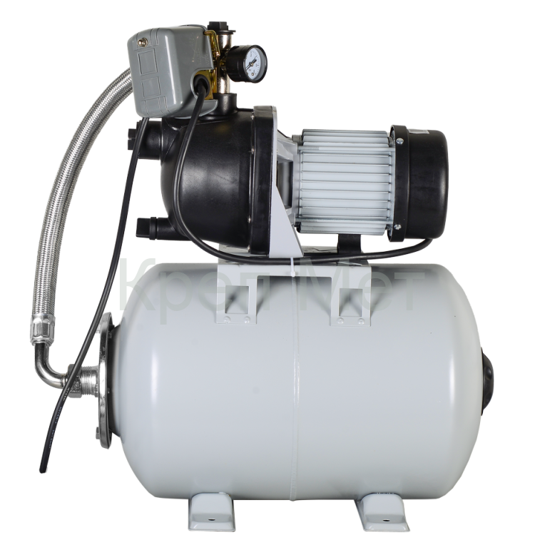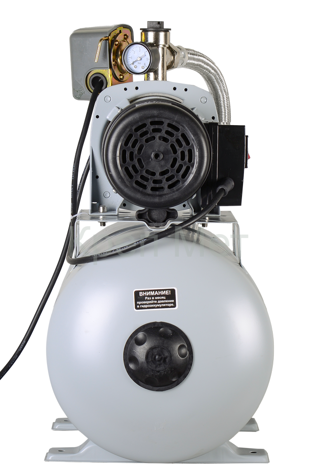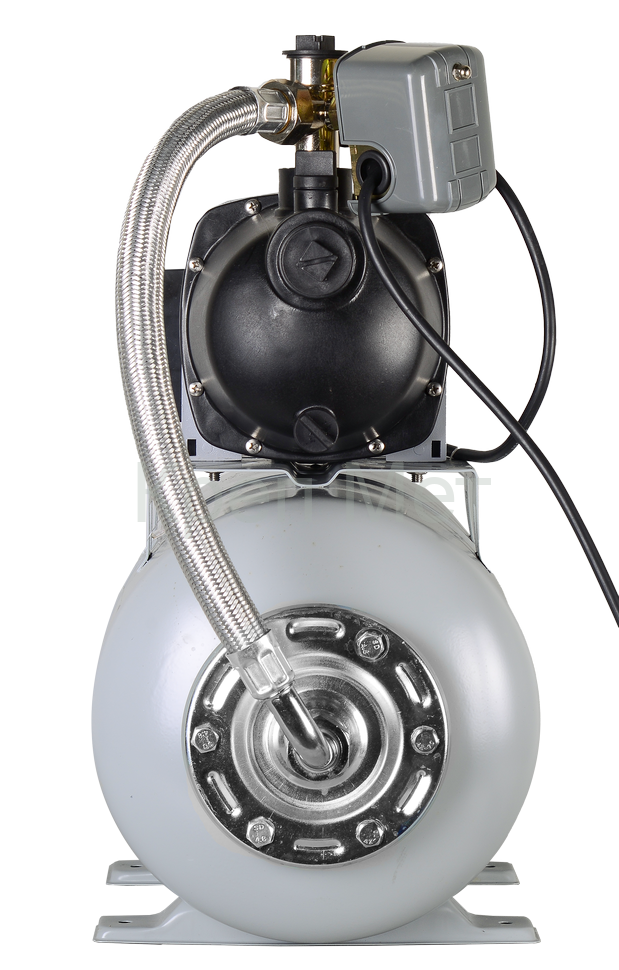 Центробежный тип насоса отличается тихой работой и надежностью. Мощность 800 Вт обеспечивает производительность до 60 л/мин, это позволяет перекачивать достаточное количество воды для бытовых нужд. Гидроаккумулятор емкостью 24 л, стабилизирует давление в системе и снижает число циклов включения-выключения насоса, продлевая срок его службы. Предусмотрена защита от сухого хода: реле, контролирует состояние уровня воды и автоматически отключает станцию при отсутствии жидкости, защищая оборудование от поломок.