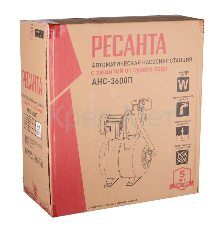 Насосная станция Ресанта АНС-3600П создана для автоматизации процесса водоснабжения в коттеджах, дачных домиках, фермах и иных объектах, требующих бесперебойного поступления воды. Ее главная задача — обеспечить постоянное давление в водопроводной системе, автоматически регулируя включение и отключение по мере расхода воды пользователями. Диаметр входного и выходного отверстий составляет стандартный 1 дюйм, это обеспечивает возможность легкого подключения к системе водоснабжения.
