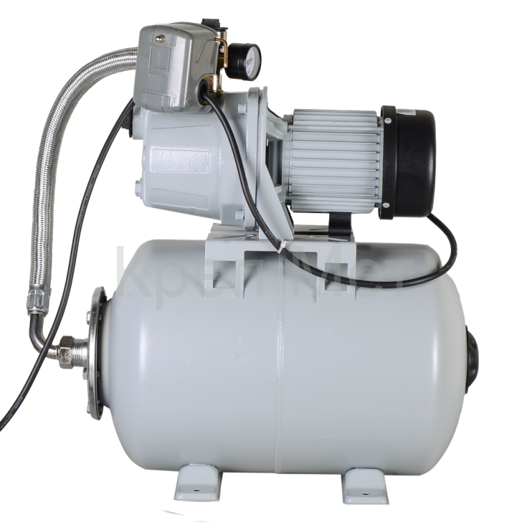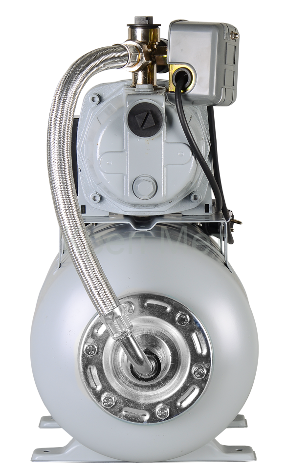 Гидроаккумулятор представляет собой бак на 24 л, выполняет роль резерва воды и минимизирует количество включений насоса, продлевая срок его службы. Наличие специальной защиты, автоматически отключающей насос при отсутствии воды, предотвращает возможные повреждения и увеличивает срок службы оборудования.