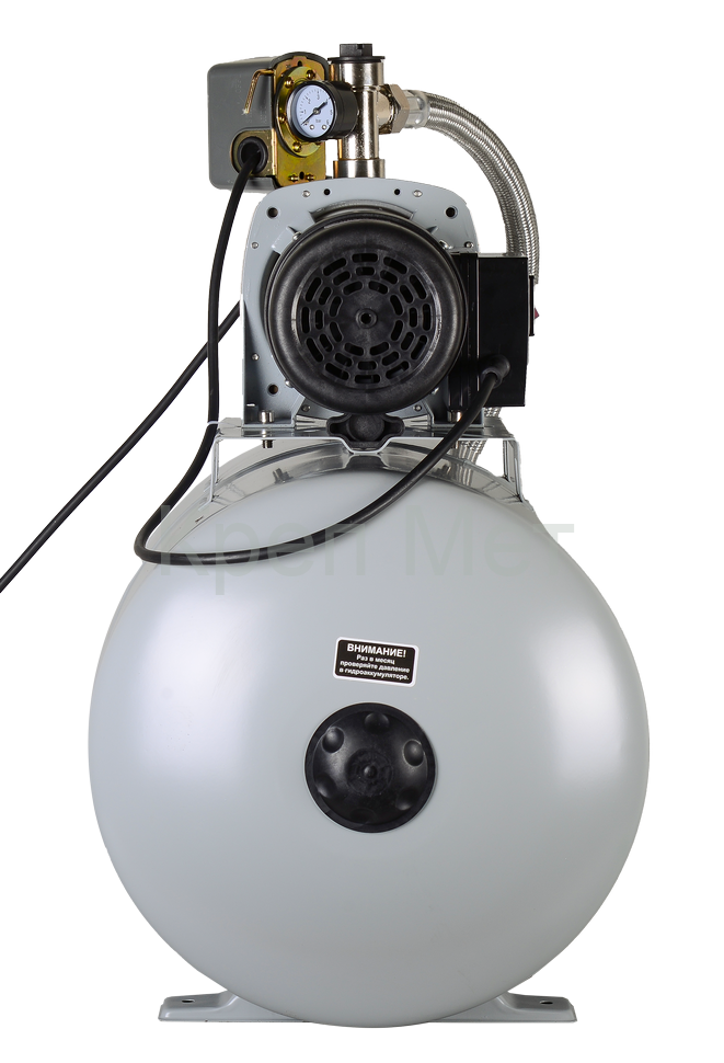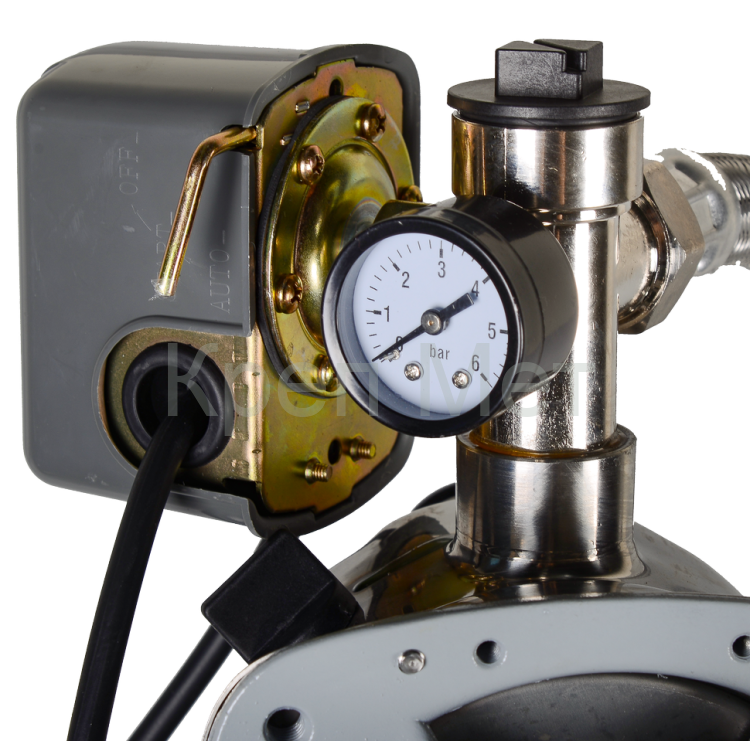 Датчик давления запускает насос, когда открывается кран или увеличивается расход воды, и отключает его при восстановлении давления. Увеличенный до 50 литров, что снижает количество включений насоса и увеличивает срок его службы. При снижении давления воды ниже критического уровня, происходит автоматическое отключение насоса. Это сделано для защиты от "сухого хода".