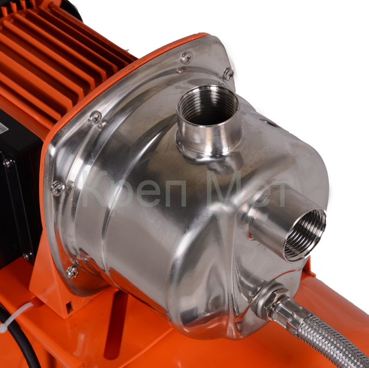 Станция способна функционировать с максимальной производительностью 55 л/мин. Мощности агрегата хватает для подъема воды на высоту до 35 м. Подключение возможно к любым источникам, где содержание твердых включений не превышает 150 г/м?. Забор воды возможен с глубины вплоть до 9 м. Центробежный насос имеет корпус из нержавеющей стали, что обеспечивает коррозийную стойкость и продлевает эксплуатационный ресурс.