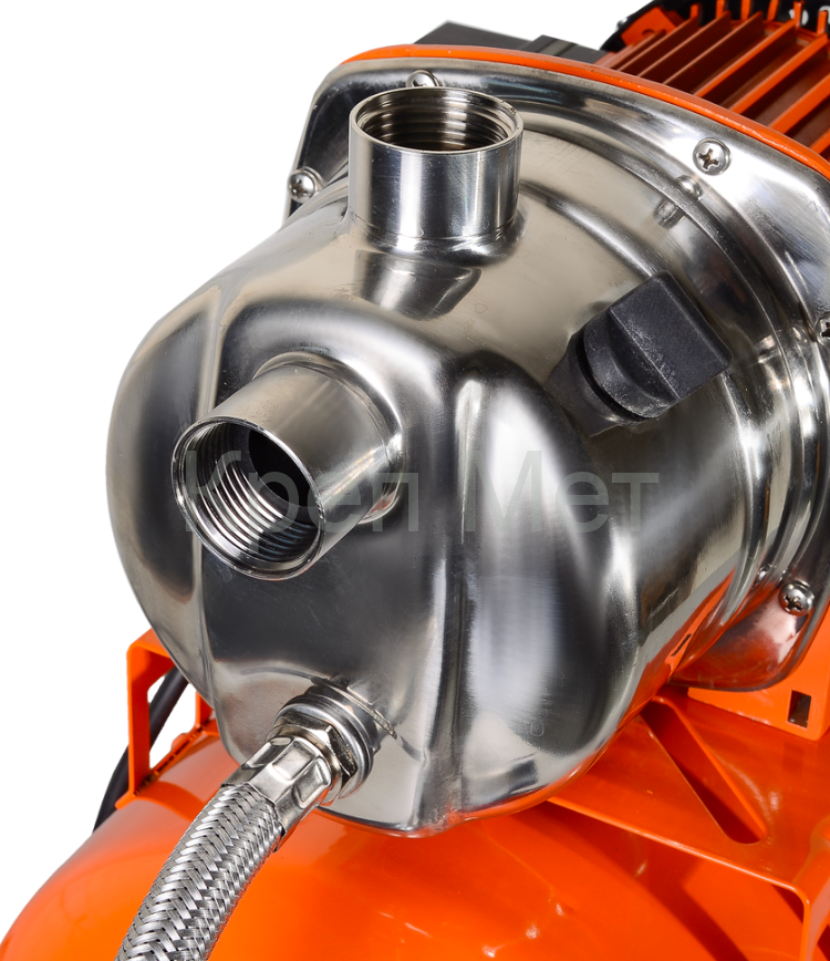 Насос способен эффективно поднимать воду с глубины до 9 м, что делает станцию идеальным выбором для подачи воды из колодцев и неглубоких скважин. Корпус насоса выполнен из нержавеющей стали, что обеспечивает его долговечность, устойчивость к коррозии и высокие механические характеристики, защищая от внешних воздействий и продлевая срок службы устройства.