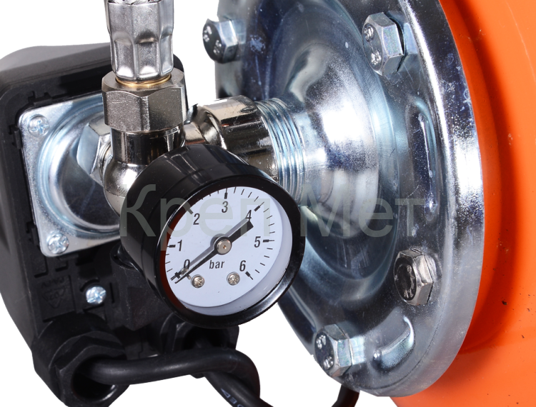 Чтобы обеспечить стабильность давления в системе и уменьшить число активаций насоса, используется гидробак объёмом 20 л. Он помогает предотвратить резкие скачки давления и увеличивает срок службы насоса.