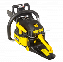 Бензопила заводится плавно и быстро, благодаря наличию системы облегчённого старта. Запуск производится без существенных усилий. Безопасность оператора обеспечивается кнопкой блокировки, предотвращающей случайное включение, и специальным защитным щитком, который защищает от попадания опилок и обломков цепи. Прорезиненные рукоятки улучшают хват и обеспечивают комфортную работу, а панель управления размещена на передней рукоятке, что упрощает обращение с инструментом.