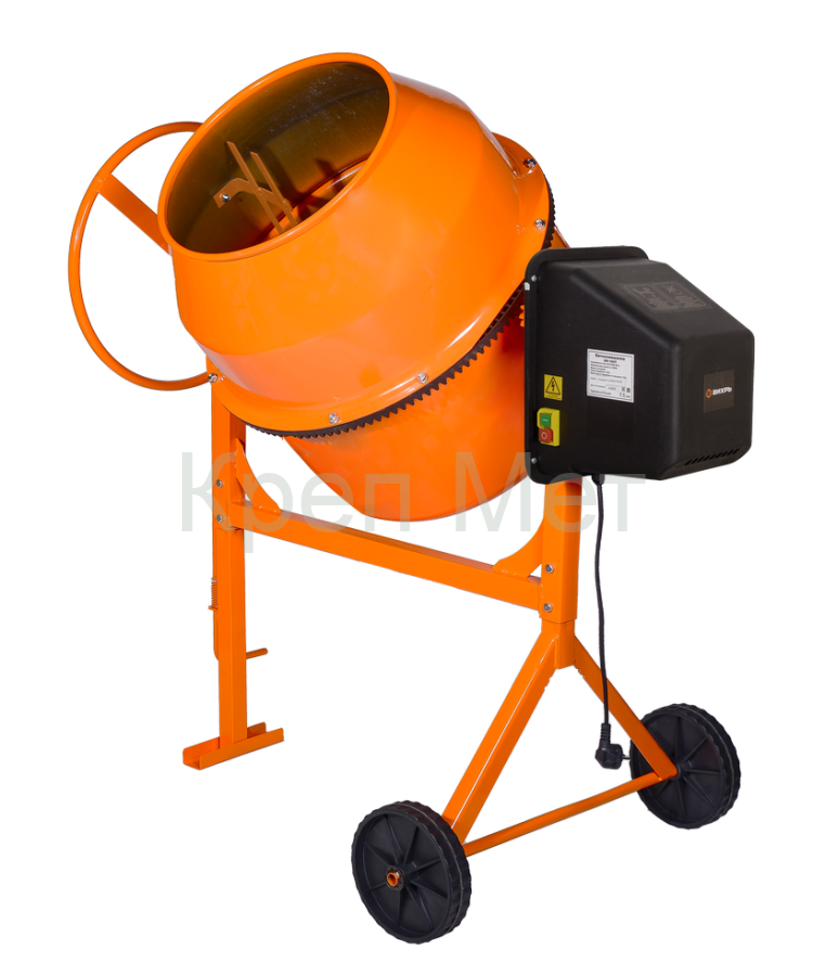 Бетономешалка подключается к стандартной бытовой сети, что делает ее удобной для использования в частном строительстве. Двигатель закрыт защитным кожухом, который предотвращает попадание посторонних предметов и пыли. Благодаря колесам бетономешалку можно легко перемещать по строительной площадке.