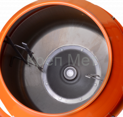 Объем барабана составляет 200 л, что идеально подходит для выполнения строительных задач средней сложности. Это позволяет обеспечить достаточное количество раствора для бесперебойной работы бригады. Удобство разгрузки обеспечивает штурвальное устройство. Благодаря этому механизму оператор может легко наклонять барабан и полностью опорожнять его, ускоряя процесс работы и сокращая потери материала.