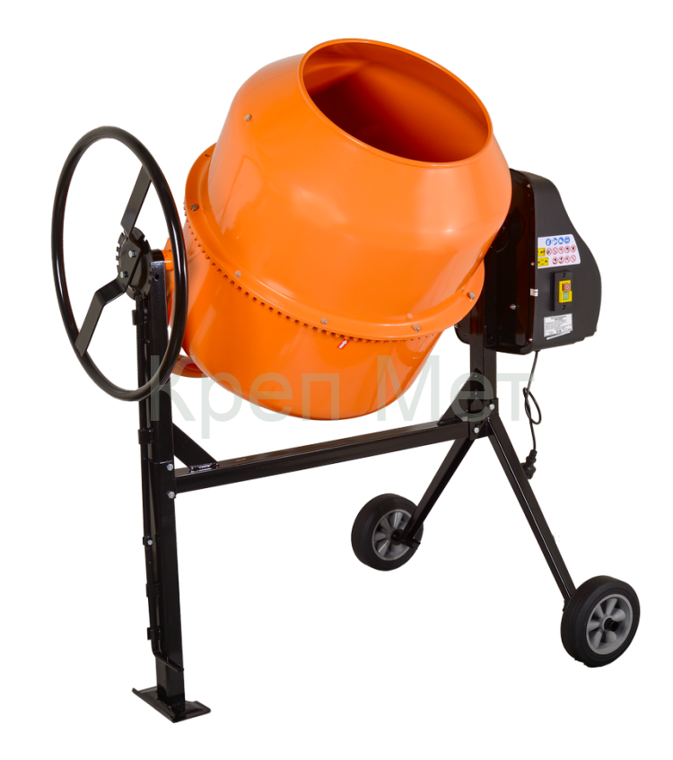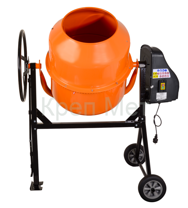 Двигатель бетономешалки мощностью 900 Вт гарантирует качественный замес даже плотных составов. Барабан вращается со скоростью 32 об/мин – это оптимальный показатель для получения однородной смеси без комков.