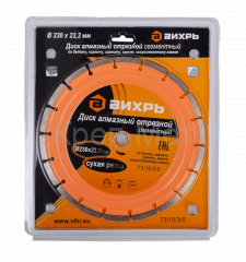- Диск алмазный отрезной ВИХРЬ 230х22,2 мм