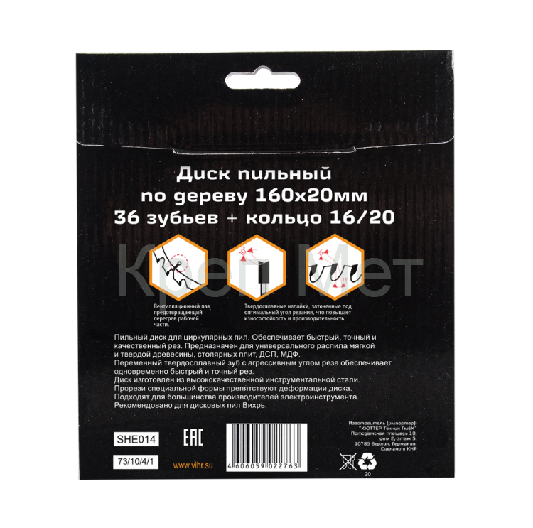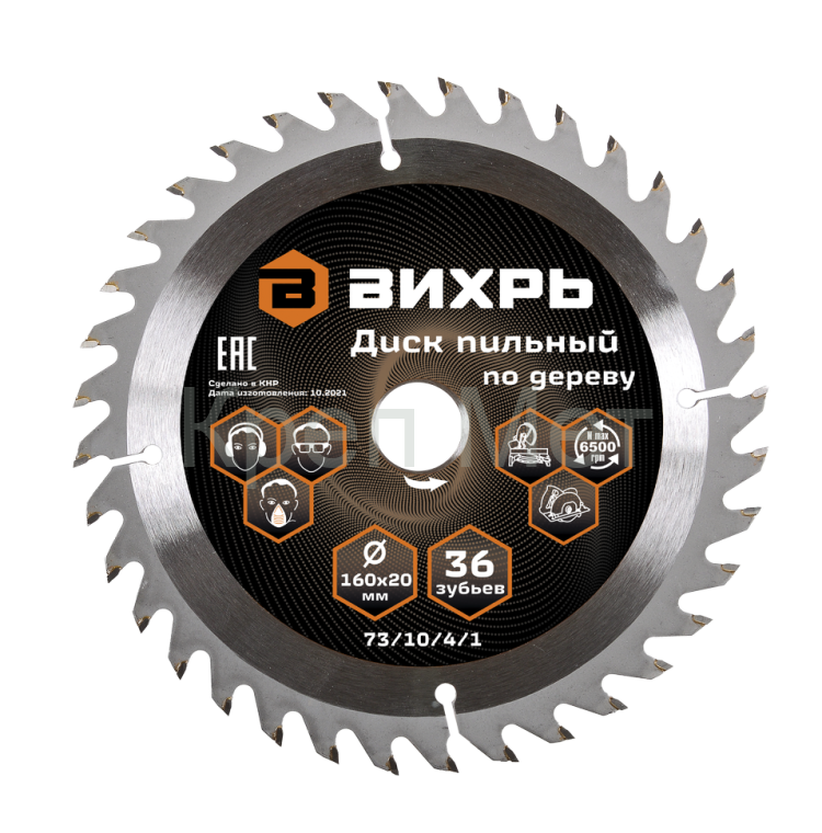 - Диск пильный по дереву ВИХРЬ 160х20мм, 36 зубьев