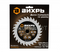 Диск пильный по дереву ВИХРЬ 160х20мм, 36 зубьев