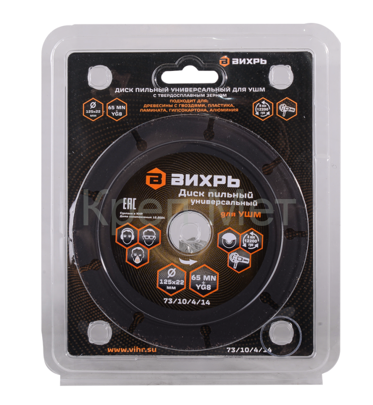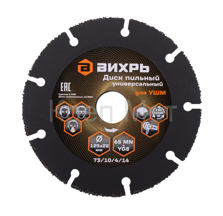 - Диск пильный по дереву для УШМ Вихрь 125х22 мм, с твердосплавным зерном
