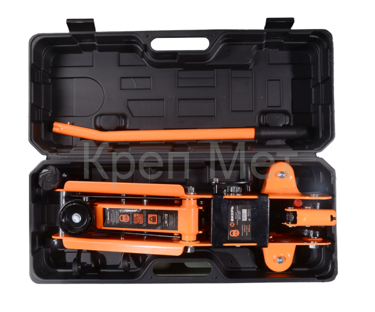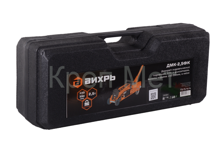 - Домкрат гидравлический подкатной ДМК-2,5ФК (2,5 т, 140-390 мм, с фиксатором, в кейсе) Вихрь