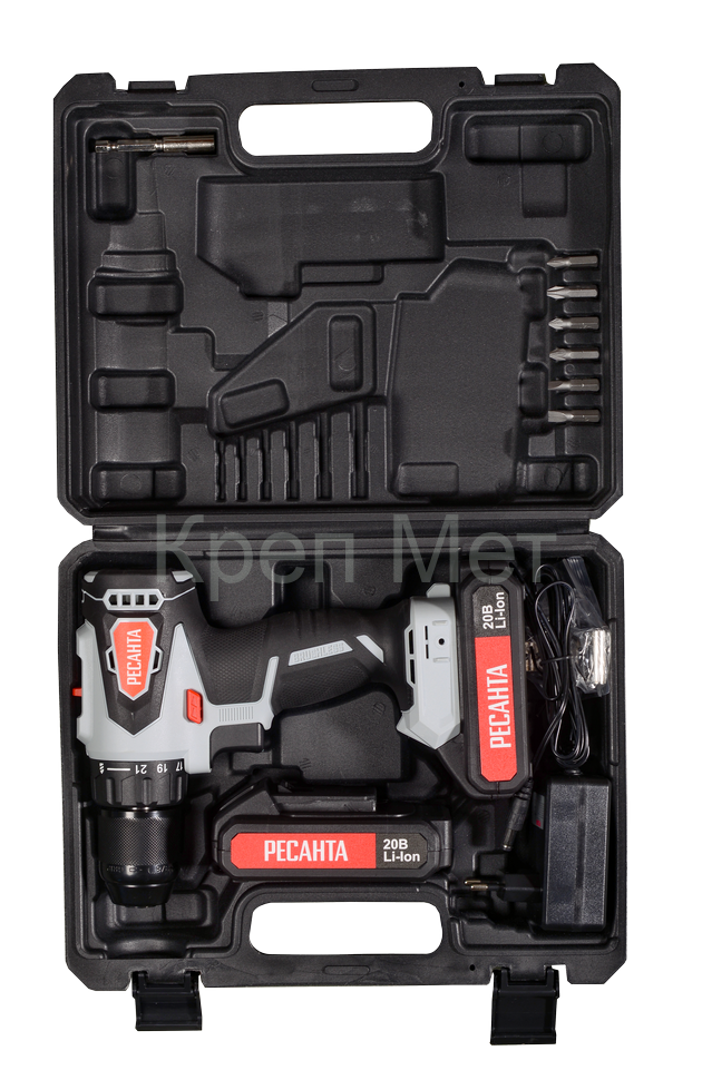 Дрель-шуруповерт аккумуляторная Ресанта ДА-20-2ЛК-Б (2,0 А/ч) (бесщеточный двигатель)