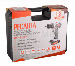 - Дрель-шуруповерт аккумуляторная Ресанта ДА-20-2ЛК-Б (2,0 А/ч) (бесщеточный двигатель)