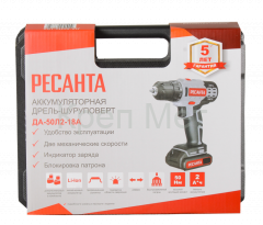 - Дрель-шуруповерт аккумуляторная Ресанта ДА-50Л2-18А