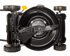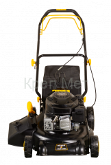 Бензиновый двигатель мощностью 5 л.с. обеспечивает отличную производительность. Газонокосилка работает на обычном автомобильном бензине, что делает её использование простым и доступным. Бак вмещает 1 л топлива, что позволяет проводить длительные работы без постоянных остановок на дозаправку.