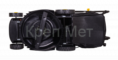 Пластиковый травосборник отличается легкостью и прочностью, что облегчает транспортировку и использование газонокосилки. Его прозрачность позволяет визуально контролировать заполнение, вовремя освобождая бак и избегая перегрузки устройства. Объем травосборника в 45 л позволяет редко отвлекаться на освобождение контейнера от мусора, работая дольше.