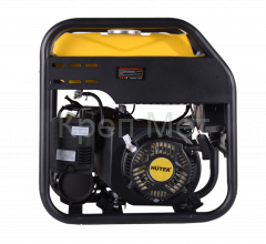 В основе генератора лежит четырехтактный бензиновый двигатель, работающий на неэтилированном бензине АИ-92. Агрегат выдает максимальную мощность 3500 Вт и номинальную мощность 3300 Вт, чего достаточно для питания большинства устройств на даче, в мастерской или во время выезда на природу. Ёмкость топливного бака составляет 7 л, что обеспечивает продолжительное время работы без частых дозаправок.