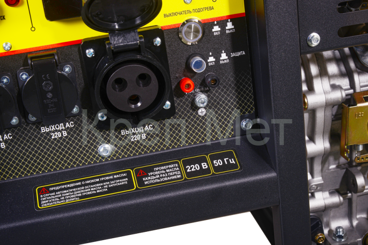 Наличие электростартера от АКБ 12В и дополнительного ручного стартера обеспечивает удобство и надежность запуска генератора в любых условиях. Подготовка под систему автоматического ввода резерва (АВР) позволяет интегрировать генератор в комплексные системы электроснабжения, обеспечивая автоматическое включение при сбоях в основной сети.