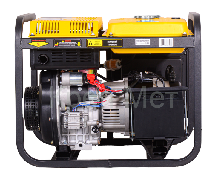 Электростартер от аккумулятора 12В обеспечивает легкий запуск, а дублирующий ручной стартер позволяет завести генератор даже при разряженной батарее.