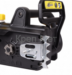 В основе модели – щеточный электродвигатель на 1,5 кВт. Двигатель расположен сбоку, что делает конструкцию более компактной и удобной в использовании. Питание пилы происходит от обычной бытовой электросети 220 В, а особый фиксатор на рукоятке надежно фиксирует штепсельную вилку.