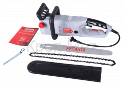Пила имеет продуманную систему безопасности. Устройство оснащено автоматическим тормозом цепи. Если пила отскочит вверх от заготовки, то оператор не повредит руки. Удобная задняя рукоятка небольшого размера с пусковым курком жестко сидит в ладони. В основании рукояти расположен фиксатор штекера, который предотвращает отсоединение от розетки. Модель имеет продуманную конструкцию, за счет удобного расположения крышки, заменить щетки электродвигателя можно быстро и просто.