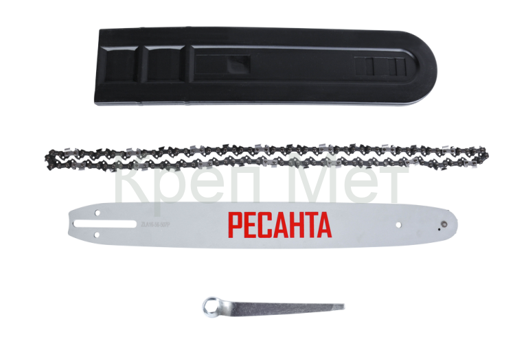 Достаточно мощный двигатель и универсальная шина длиной 40 см подойдут для большинства бытовых задач. Цепь состоит из 57 звеньев толщиной 1,3 мм с шагом цепи 3/8”. Скорость пиления составляет 13,6 м/сек.