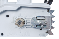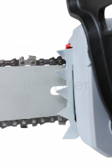 Цепная пила Ресанта ЭП-1814П имеет компактную шину длиной 355 мм и цепь из 53 звеньев. Толщина звеньев 1,3 мм, шаг цепи 3/8 дюйма. Электрический двигатель мощностью 1800 Вт создает скорость пиления 13.6 м/с. Для исключения перегрева во время пиления предусмотрена автоматическая смазка цепи. Контролировать уровень цепного масла можно через специальное окошко на корпусе.