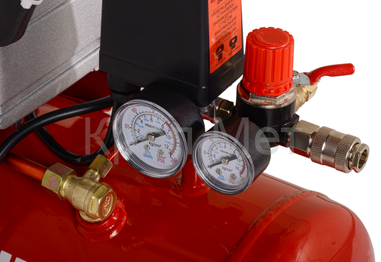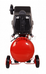 Особенностью устройства является наличие удобной ручки и колёс для лёгкого передвижения по рабочей зоне, а также продуманная система манометра, контролирующего показатель давления в ресивере объёмом 24 л. Дополнительную информативность обеспечивает специальное смотровое окошко, позволяющее регулярно проверять уровень масла в картере и поддерживать его на необходимом уровне для долгосрочной эксплуатации. Система оснащена специальным клапаном, выпускающим избыточное давление и механическим дренажным устройством для удаления накопившегося конденсата, повышая общий срок службы компрессора и увеличивая безопасность использования.