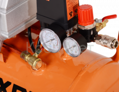 Объем ресивера в 24 л позволяет накапливать достаточное количество сжатого воздуха для кратковременного использования без необходимости постоянной работы двигателя. Это делает компрессор удобным для применения в условиях, где требуется быстрый доступ к воздуху, например, при работе с пневматическими инструментами или надувании шин.