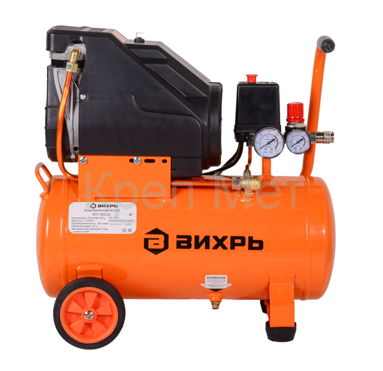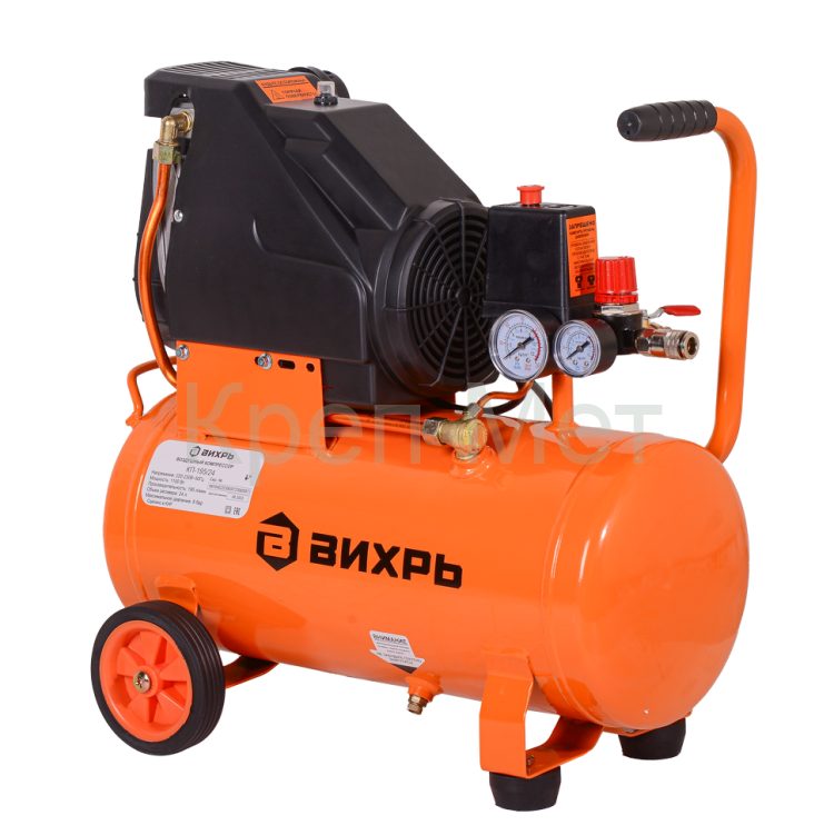 Ресивер объёмом 24 л позволяет накопить достаточное количество сжатого воздуха для кратковременного использования без постоянной работы двигателя. Это делает устройство удобным для быстрого доступа к воздуху.