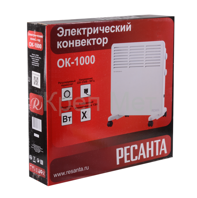 Конвектор данной модели комплектуется монолитным Х-образным нагревательным элементом. Для удобства эксплуатации предусмотрены разные температурные режимы. Высокоточный термостат поддерживает заданную температуру в помещении. Устанавливаться электроконвектор РЕСАНТА ОК-1000 может на стену или пол. Для простого перемещения он комплектуется колесиками. Имеет небольшой вес и компактные размеры. Работает бесшумно, может использоваться в дневное и ночное время. К преимуществам модели стоит отнести и высокую пожарную безопасность, прибор имеет встроенную термозащиту. Так как электрообогреватель данного типа имеет уровень защиты IP24, его можно устанавливать даже в помещении с повышенной влажностью.