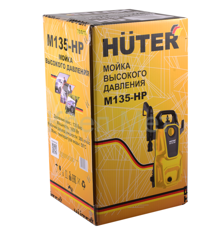 Мойка высокого давления Huter M135-HP — незаменимый инструмент для ухода за гаражом, дачей или загородным домом. С её помощью вы сможете быстро и эффективно очистить любые поверхности: будь то автомобиль, мотоцикл, велосипед, фасады зданий, садовые дорожки или рабочие инструменты.
