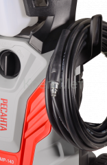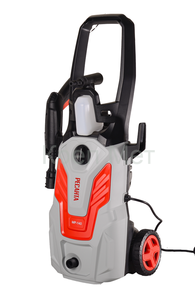 МР-140 Ресанта оснащена синхронным электродвигателем мощностью 1650 Вт. МР-140 - это базовая модель моек Ресанта с невысокой мощностью и рабочим давлением 90 бар. Она компактная и мобильная и хорошо подойдёт для решения простых бытовых задач по очистке поверхностей.