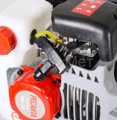 Топливный бак объемом 1,25 л. Устройство работает на смеси бензина и моторного масла для двухтактных двигателей.