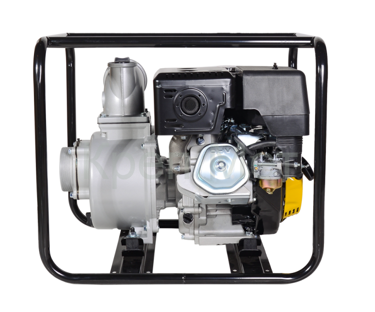 Мотопомпа способна перекачивать до 1800 л/мин, что выводит её в лидеры среди аналогичных устройств. Надежный четырехтактный одноцилиндровый двигатель с рабочим объемом 389 см3 и мощностью 13 л.с., что обеспечивает уверенную работу даже в сложных условиях. Топливный бак на 6 л позволяет насосу проработать длительное время без дозаправки, увеличивая его автономность.