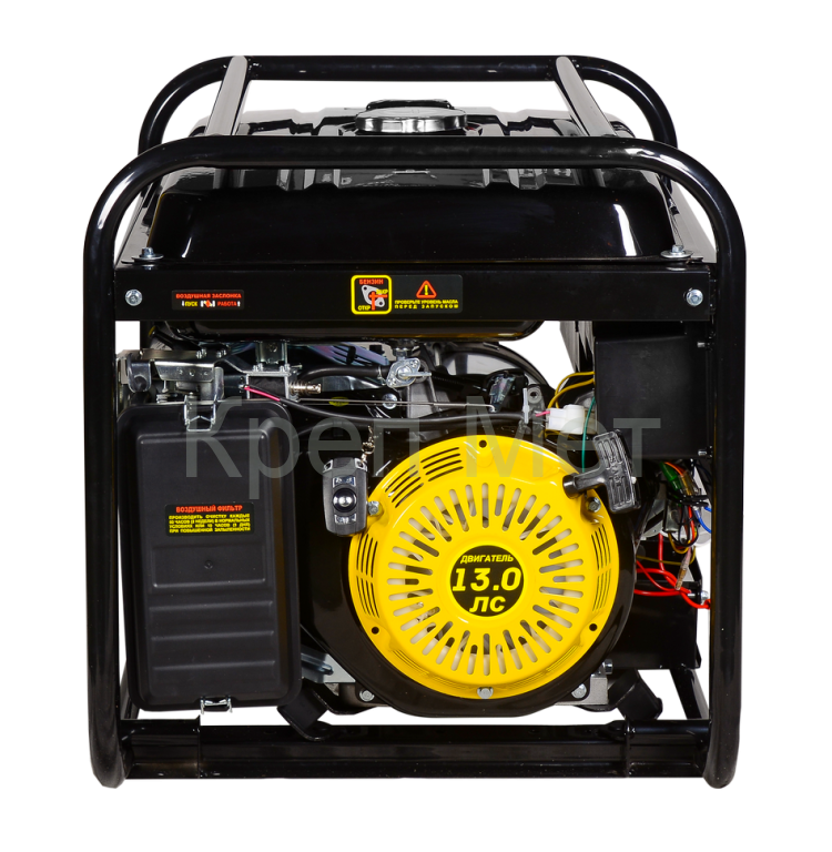 Устройство оснащено мощным четырёхтактным карбюраторным двигателем с мощностью 13 л.с., обеспечивающим стабильную работу даже под нагрузкой. Благодаря ему генератор обладает номинальной мощностью 5000 Вт и максимальной (пиковой) мощностью 5500 Вт, что позволяет легко справляться с потребностями в электроэнергии большинства бытовых и строительных инструментов. Обеспечивает надежную защиту двигателя от износа системы смазки емкостью 1100 мл.
