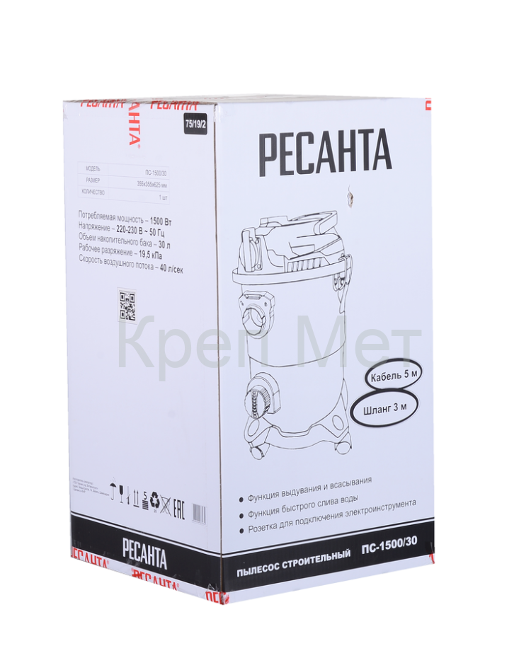 Строительный пылесос Ресанта ПС-1500/30 предназначен для очищения строительных территорий, производственных помещений и жилых площадей после завершения ремонтно-строительных мероприятий. Универсальность прибора обеспечивается поддержкой двух режимов работы: сухого и влажного всасывания. Возможность подключения различных электроинструментов позволяет эффективно удалять пыль и производственные отходы, образующиеся в процессе их эксплуатации.