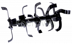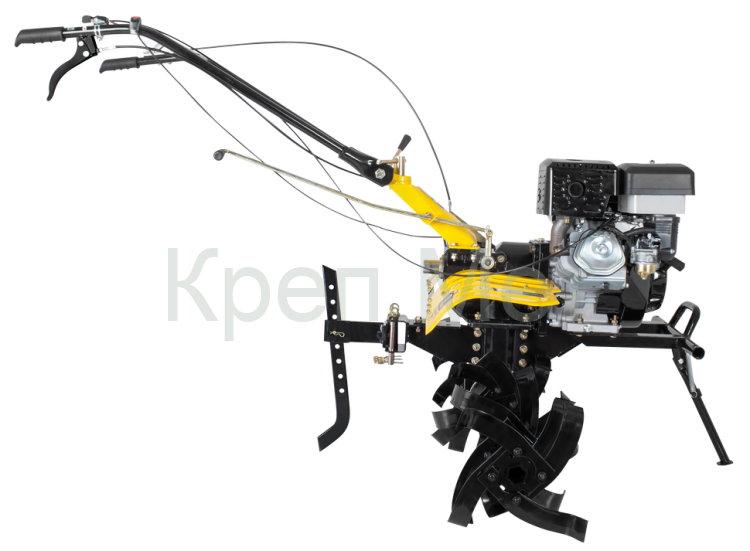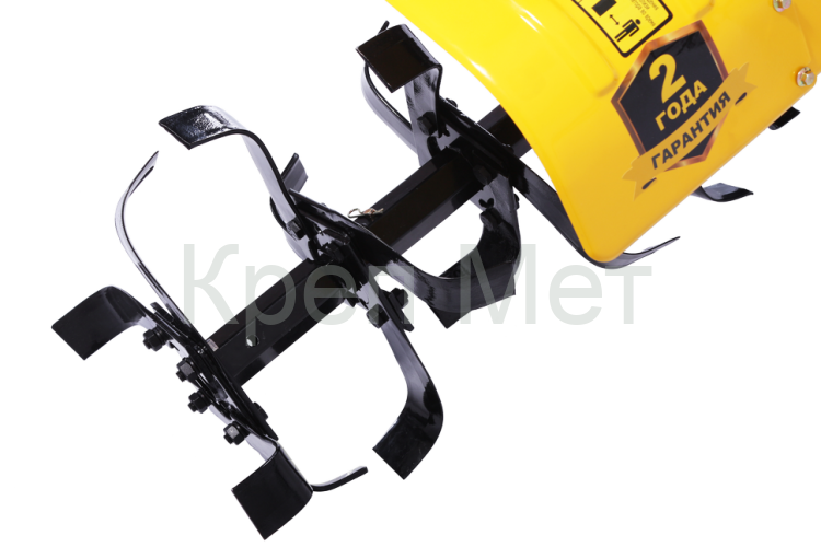 Режущие элементы — фрезы — прикрыты защитными кожухами, препятствующими попаданию камней и пыли на оператора. Панель управления удобно расположена непосредственно на рукоятях мотоблока, облегчая контроль над процессом обработки.