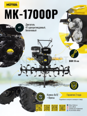 MK-17000P оборудован мощным четырёхтактным двигателем объёмом 17 л.с., способным легко преодолевать сопротивление тяжелых и жёстких почв. Автоматический регулятор оборотов упрощает эксплуатацию, делая управление агрегатом лёгким и комфортным. Дополнительной гарантией надежности мотора выступает встроенный датчик уровня моторного масла, исключающий запуск при недостаточном уровне смазки, что бережёт ресурс техники.