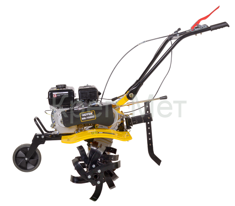 От аналогичной модели Huter MK-7000Р отличается отсутствием колёс в заводской комплектации.