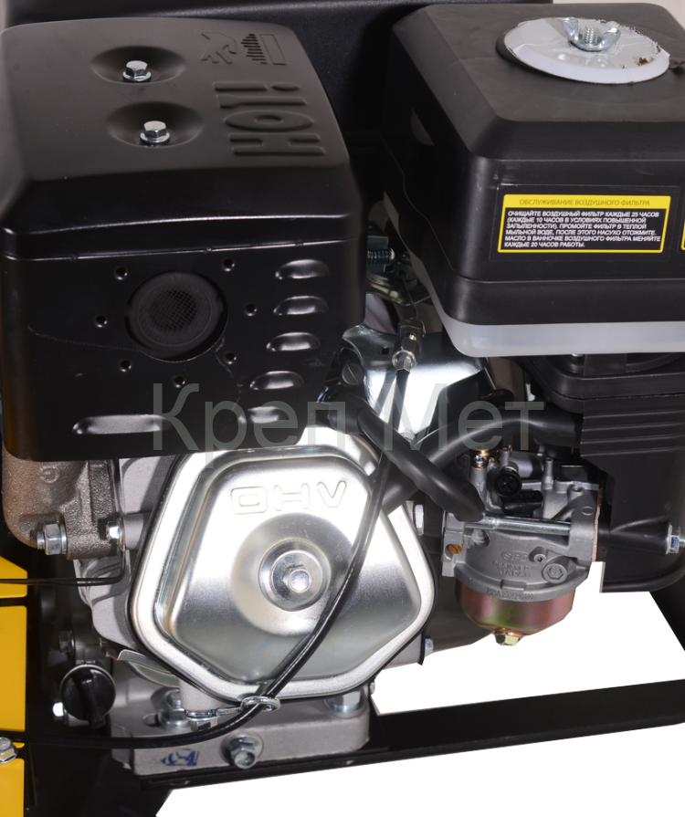 Аппарат оснащён мощным бензиновым двигателем на 9,5 л.с. Специальный датчик предупреждает о нехватке масла в двигателе и останавливает его работу. Воздушный фильтр, наполненный маслом, надежно защищает двигатель при эксплуатации в условиях высокой концентрации пыли.