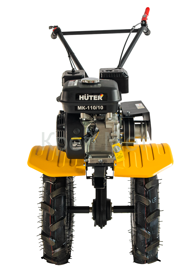 Особое внимание уделено удобству перемещения и безопасности оператора. Широкие колёса размера 4?10 дюймов оснащены агрессивным протектором, предотвращающим застревание машины в мягких почвах. Защитные крылья помогают избежать раскидывания почвы в сторону оператора во время обработки территории.