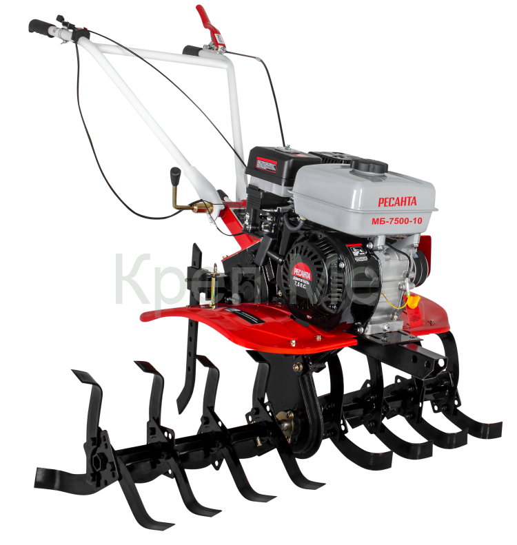 МБ-7500P-10 Ресанта - сельскохозяйственная машина, которая подойдет для механизации большого списка работ на приусадебном участке, в саду или небольшом фермерском хозяйстве. Мощности достаточно для обработки средних и больших территорий. Модель отличается высокой маневренностью, позволяет комфортно работать в узких междурядьях. С помощью разборной фрезы можно регулировать ширину обработки почвы от 45 см до 1 м. Мотоблок подходит для вспахивания почвы, в том числе целины. Закаленные фрезы диаметром 30 см. идут в комплекте. Глубина вспашки регулируется сошником.