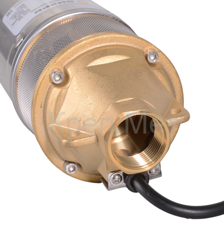 Верхний тип забора воды способствует предотвращению попадания крупных частиц грязи и песка внутрь насоса, увеличивая тем самым его ресурс и продлевая срок службы. Крыльчатка насоса изготовлена из латуни, что придает ей прочность и стойкость к коррозии. Диаметр самого насоса составляет 4 дюйма, что позволяет устанавливать его в скважины небольшого диаметра.