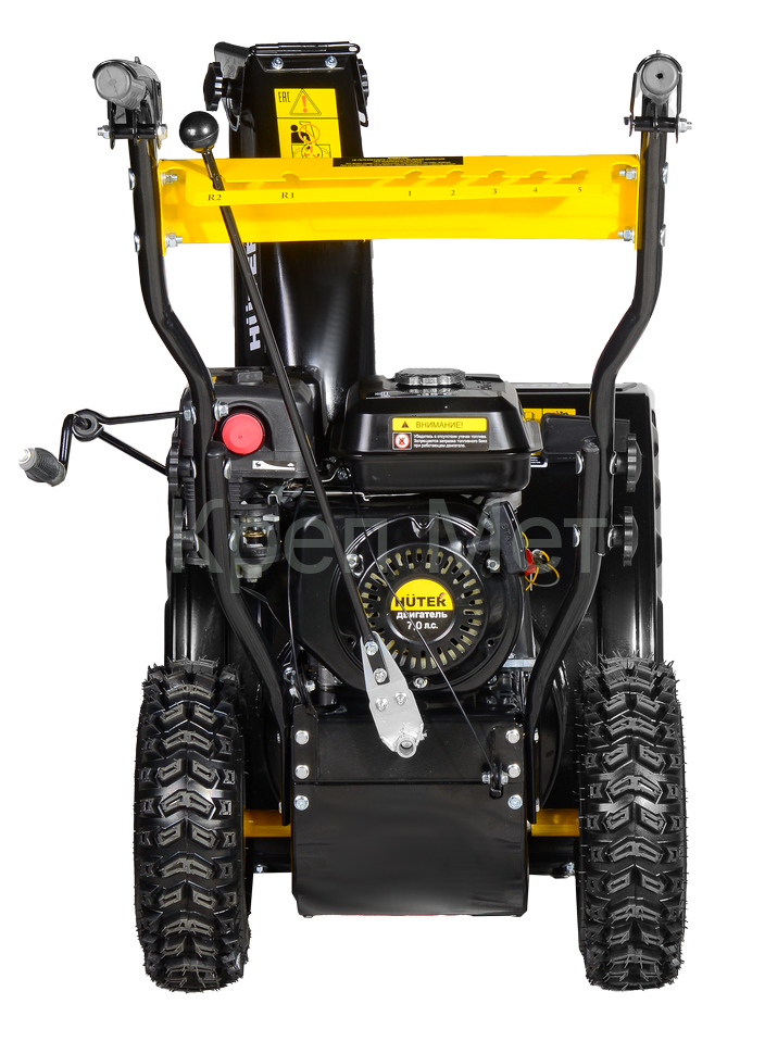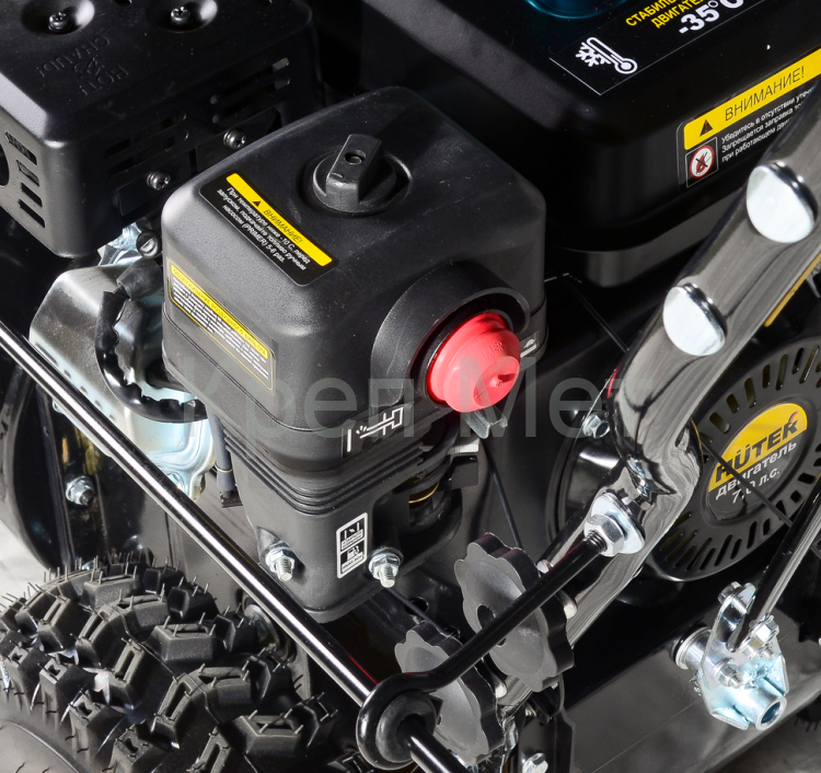 Двигатель с номинальной мощностью 7 л.с. обеспечивает отличную производительность и достаточную тяговую силу. Это позволяет эффективно работать даже с плотно утрамбованным и мокрым снегом, который обычно сложнее всего убирать. Система запуска реализована через надежный ручной стартер, который обеспечивает быстрый и уверенный старт двигателя при любых погодных условиях.