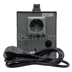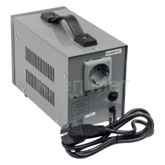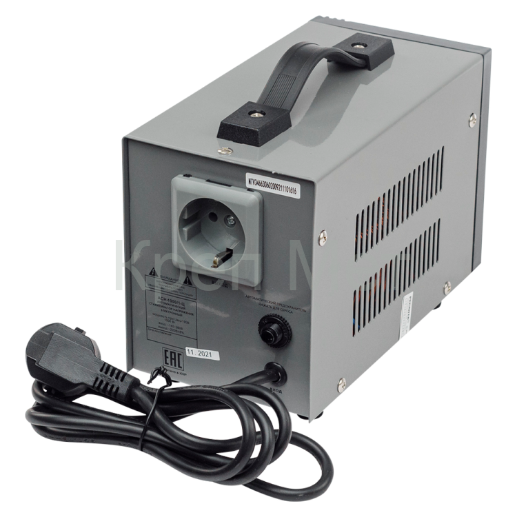 Стабилизатор имеет компактные размеры и предназначен для напольного размещения. Охлаждение осуществляется естественным путем. Прибор оснащен одной выходной розеткой и обеспечивает максимальную мощность нагрузки 1000 Вт при входном напряжении 190 В.