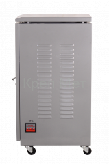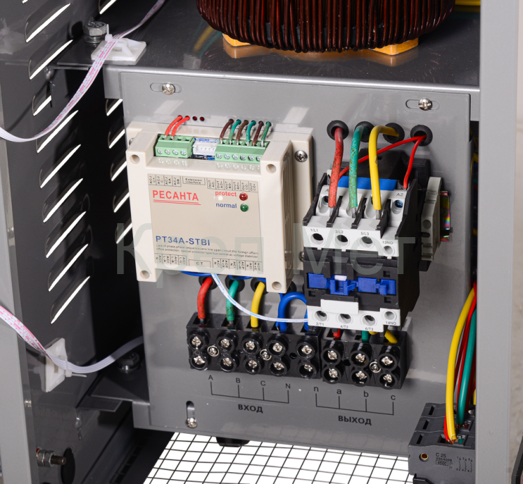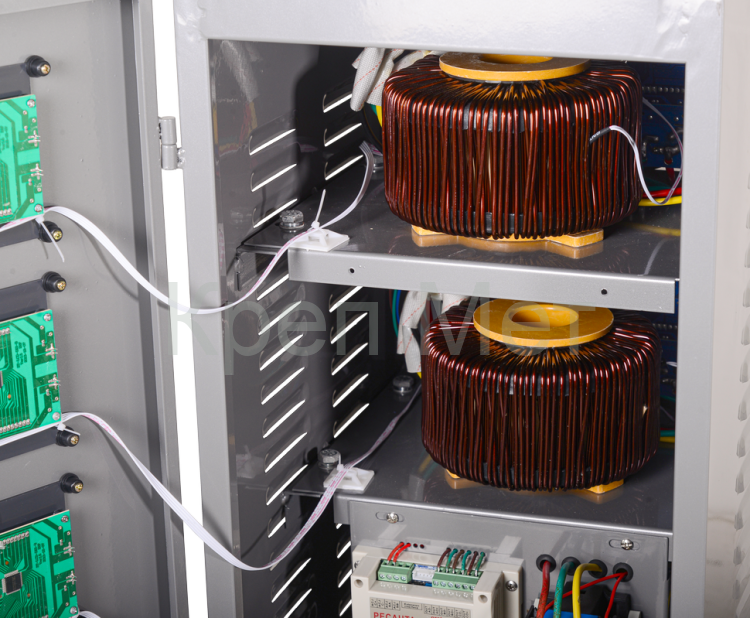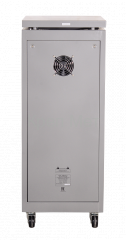 Цифровой дисплей отображает основную информацию о состоянии сети и стабилизатора, позволяя оператору следить за изменениями в режиме реального времени. Конструкция стабилизатора выполнена с применением прочного корпуса, стойкого к механическим повреждениям и воздействию внешней среды. Наружные панели выполнены из металла, что придаёт дополнительную прочность и увеличивает срок службы устройства. Для повышения комфорта эксплуатации стабилизатор оборудован колёсиками, позволяющими свободно перемещать устройство в помещении, что делает его ещё удобнее и мобильнее. Принудительное охлаждение способствует повышению энергоэффективности и уменьшает износ деталей.
