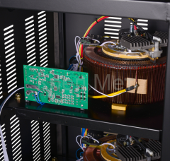 Главное преимущество данного стабилизатора заключается в высокой точности выходной регулировки напряжения — всего ±2%. Это стало возможным благодаря электромеханическому принципу работы. Микроконтроллер аккуратно регулирует выходное напряжение. Всё это сопровождается минимальным шумом и отсутствием ощутимых скачков напряжения на выходе, что положительно сказывается на сроке службы чувствительных электроприборов.